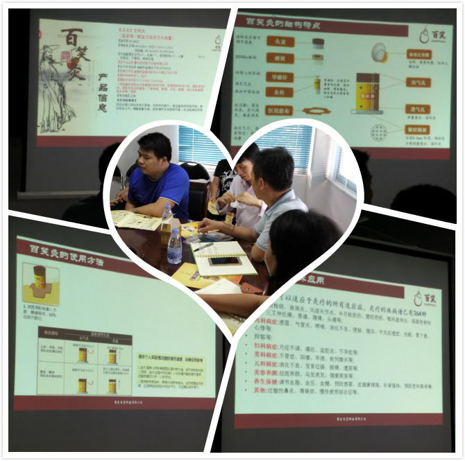 公司召開產(chǎn)品學習會議2摘要:2017年7月31日召開市場銷售業(yè)務(wù)員的產(chǎn)品學習。主要學習康復理療產(chǎn)品《百笑灸》。