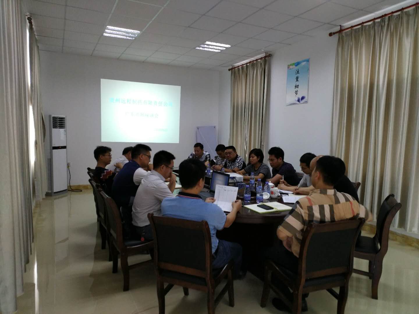 6月22日,貴州遠(yuǎn)程制藥領(lǐng)導(dǎo)蒞臨我司指導(dǎo)工作并出席廣東市場(chǎng)工作座談會(huì)。我司董事長(zhǎng)黃總出席座談會(huì)并聽(tīng)取各區(qū)域負(fù)責(zé)人上半年工作匯報(bào)。各區(qū)域負(fù)責(zé)人就各自區(qū)域拓展情況做了詳細(xì)匯報(bào)。并從兩個(gè)方面開(kāi)展工作:一、各區(qū)域的醫(yī)療機(jī)構(gòu)、連鎖、門診開(kāi)發(fā)與用藥的習(xí)慣培養(yǎng)等工作匯報(bào)。二、下半年工作規(guī)劃及銷售指標(biāo)達(dá)成方案。 會(huì)議旨在:堅(jiān)定方向、樹(shù)立信心、夯實(shí)基礎(chǔ)、共同發(fā)展。為廣東市場(chǎng)加油打氣。
