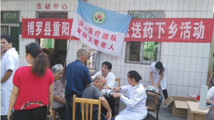 2015年10月19日,博羅縣重陽節(jié)關(guān)愛老年活動啟動儀式在博羅縣中醫(yī)醫(yī)院舉行,本次活動由縣老齡委、民政局、衛(wèi)計局、縣老年醫(yī)療衛(wèi)生協(xié)會、縣紅十字會主辦,縣中醫(yī)醫(yī)院承辦,博羅彭城慈善會、廣東穗康醫(yī)藥有限公司、博羅康佳、羅浮山黃龍宮太上丹道養(yǎng)生試范基地協(xié)辦。出席本次活動的領(lǐng)導(dǎo)和嘉賓為:博羅縣原人大主任蔡民壽、博羅縣原政協(xié)副主席兼統(tǒng)戰(zhàn)部長劉細(xì)雅、博羅縣老年醫(yī)療衛(wèi)生協(xié)會會長陳勝如、博羅康佳董事長曹巨潮及舉辦單位單位相關(guān)負(fù)責(zé)人。儀式結(jié)束后,舉辦單位相關(guān)領(lǐng)導(dǎo)帶領(lǐng)眾心醫(yī)療團隊到博羅縣羅陽鎮(zhèn)田牌敬老院舉行慰問及送醫(yī)送藥義診活動。 本次活動到10月30日圓滿結(jié)束,共慰問9個鄉(xiāng)鎮(zhèn)敬老院老人,總?cè)藬?shù)157人,送去醫(yī)療器械一批(電子血壓計、電子探熱針、老人護理包)和慰問金,為老人進行健康檢查和建立健康檔案,并進行義診送醫(yī)送藥活動。活動取得了圓滿成功,受到當(dāng)?shù)卣⒕蠢显豪先思叭罕姷囊恢潞迷u。本次活動得到羅陽鎮(zhèn)衛(wèi)生院、泰美鎮(zhèn)衛(wèi)生院、石壩鎮(zhèn)衛(wèi)生院、柏塘鎮(zhèn)衛(wèi)生院、湖鎮(zhèn)鎮(zhèn)衛(wèi)生院、長寧鎮(zhèn)衛(wèi)生院、福田鎮(zhèn)衛(wèi)生院、楊村鎮(zhèn)衛(wèi)生院、公莊鎮(zhèn)衛(wèi)生院參與和大力支持。 如下為活動部分掠影: