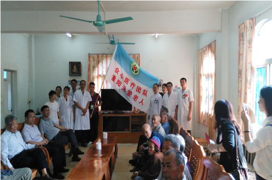 圖為眾心醫(yī)療團隊及泰美鎮(zhèn)政府領(lǐng)導(dǎo)到泰美敬老院慰問活動